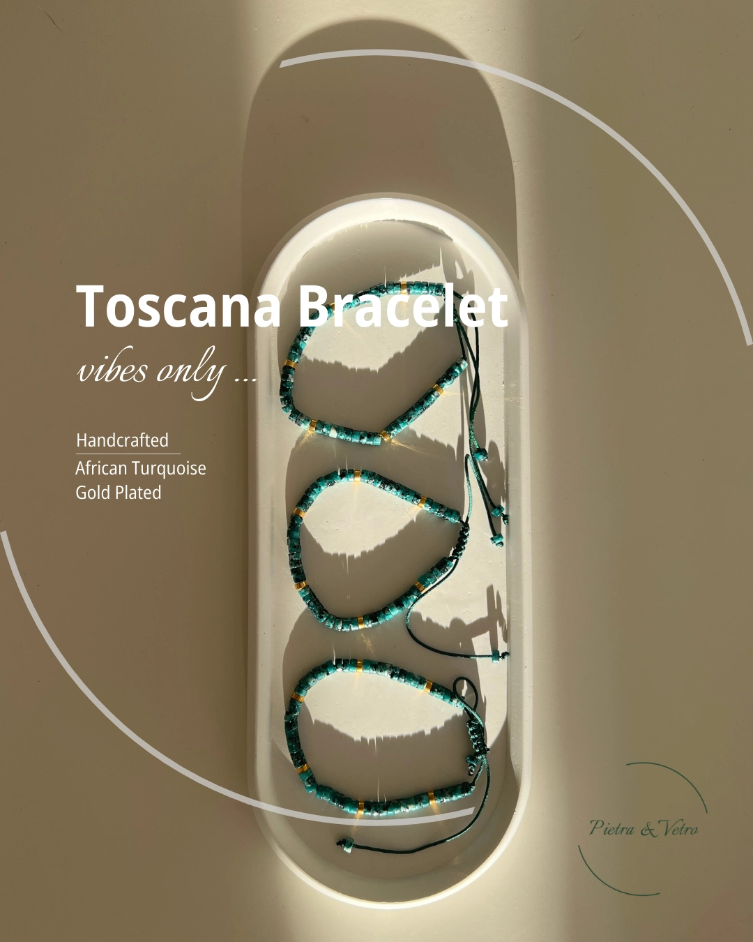 Koleksiyon, doğanın saflığını ve Toscana'nın sıcaklığını yansıtan doğal taşlar ve el yapımı Murano cam boncuklar kullanılarak tasarlanmıştır. Altın sarısı, toprak tonları ve zeytin yeşili gibi renkler, bu büyüleyici bölgenin sıcak tonlarını ve pastoral manzaralarını takılara taşır. Her bir parça, İtalya’nın kalbinden gelen zarif ve sofistike bir dokunuşla hem günlük kullanımda hem de özel anlarda fark yaratmak isteyenlere hitap eder.